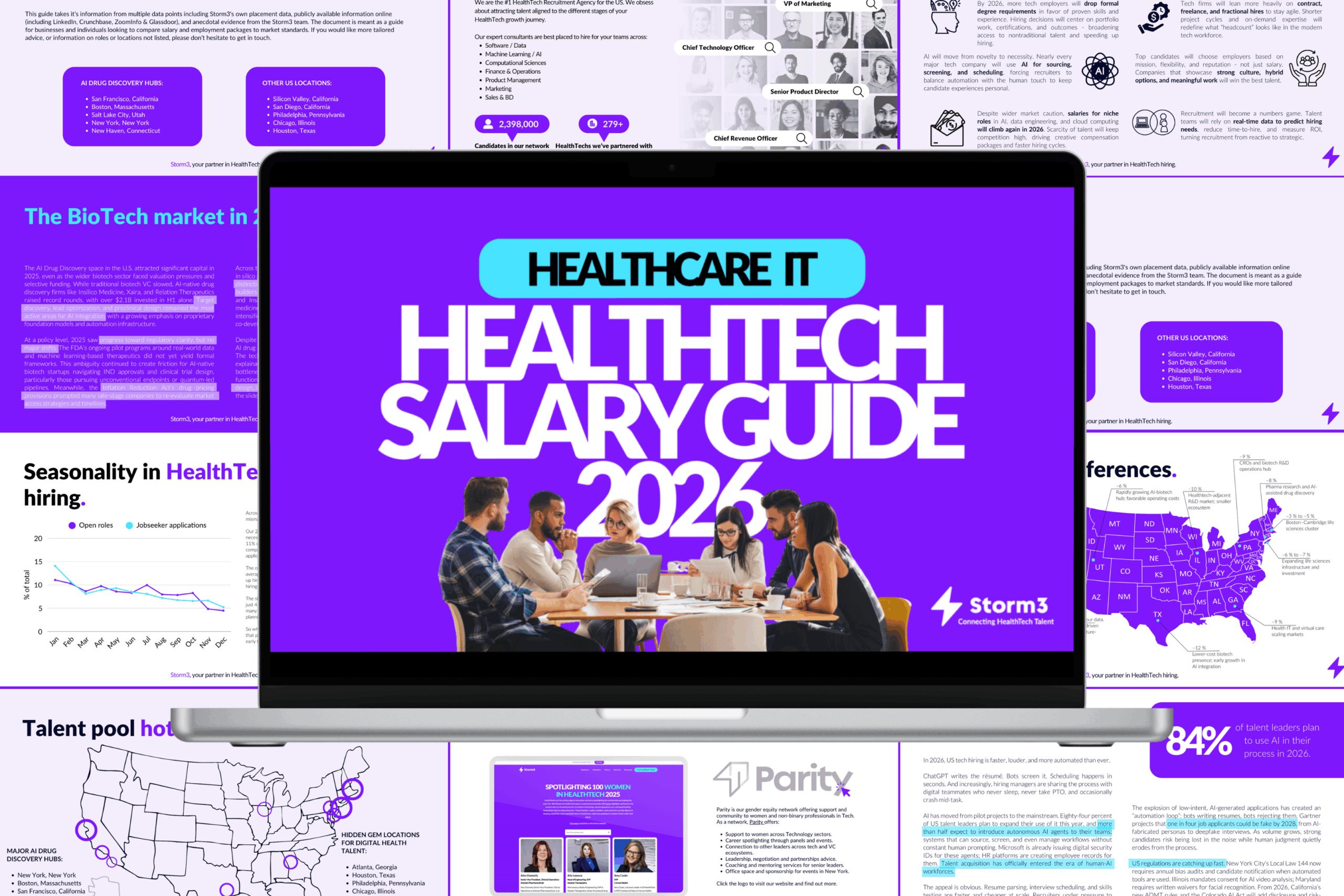 Our HealthTech Salary Guides are built on the latest data from our extensive candidate network and industry trends. Discover how HealthTech salaries are evolving in 2026 and stay ahead of the curve.